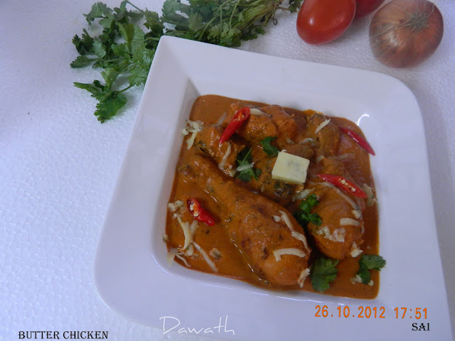 Butter chicken is famous dish of North India.We can adjust the flavor of this dish as we like,mild or spicy.It is best served with roti’s and naan.Butter chicken is best served with lot of Butter.We can also prepare this dish either with boneless or with bone as per our choice.The main ingredient of the gravy is tomatoes.Generally it is little bit sweetish in taste.But I prepare it spicy since my folks like it theeka that is spicy.This is a two in one recipe where you  can prepare  both Tandoori chicken and Butter chicken in the same recipe.I have posted the recipe of Tandoori murg in a separate post.