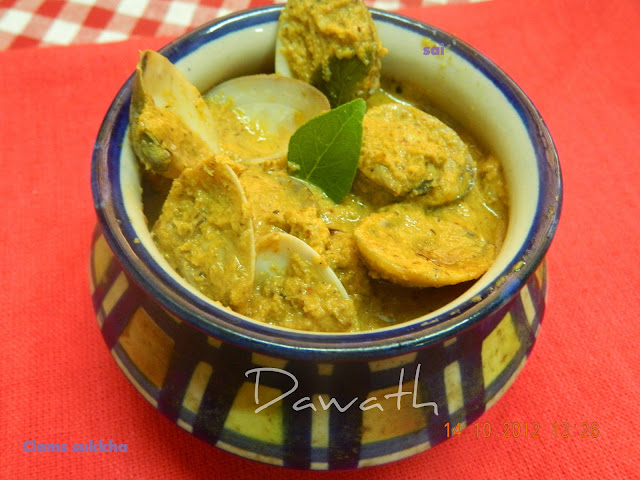 Clams sukkha or Kubbe sukkhe in Konkani is again a Konkani preparation.Kubbe means clams and Sukkhe means dry .They are surprisingly high in Iron.They are a good source of phosphorus,Zinc,Copper etc. Seafood is generally cooked in mud vessels in South Kanara as it enhances the flavor.Coming back to the recipe this is again my mom’s recipe.This dish is my son’s favorite dish.He enjoys this dish so much there is no need to dish wash his plate after his food.