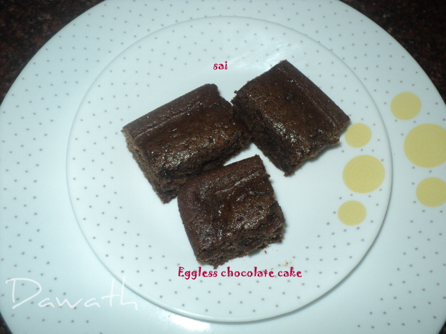 Chocolate cake was discovered by Dr James Baker .So we should be thankful to him for discovering search a wonderful creation. This is a mouth watering and a yummy cake,that too eggless.This recipe I adapted from Aparna Mallya’s blog where the original recipe was with the Microwave version which I modified and baked in the convection mode.