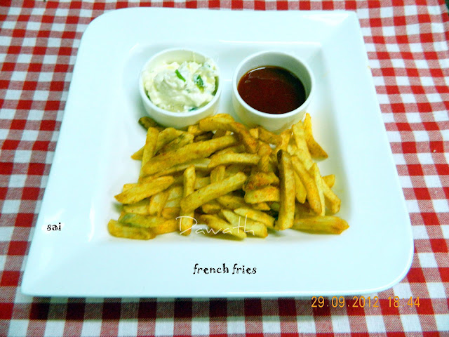This is one of the most commonly served starter . They can be savored anytime , day or night . Be it kids or elders , all enjoy and relish it . This compliments well with tomato ketchup . This is the star of any party . You may serve these munchies only with salt or with salt and chilly powder . The choice is absolutely yours . Health conscious people may also bake the fries with few teaspoons of olive oil . But I don’t mind to indulge these fries deep fried once in a while .