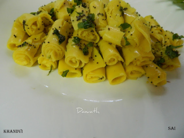 Khandvi is a  traditional Gujarati dish.It is  a delicious savory made with gram flour.There are several methods of this recipe.In some recipes they add curds and  It is prepared in the  microwave too.I practiced this several times  and finally succeeded one day after my  bhabhi Santoshi gave me the demo at my place.Thanks a lot Santoshi 🙂