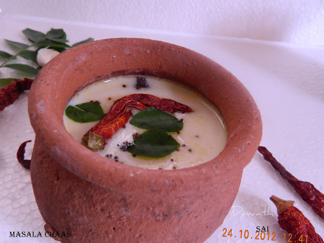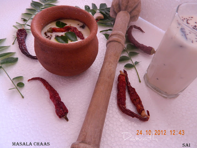 Masala chaas means buttermilk tempered with spices.Buttermilk is good for digestion and it is most often served after meal in South Indian homes .It contains less fat.