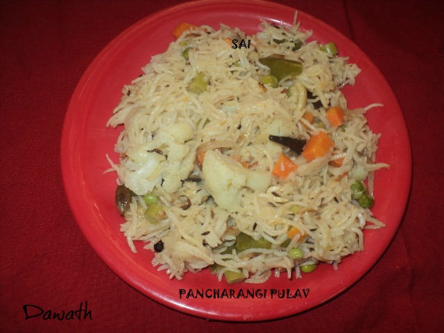 Pancharangi pulav is a colourful pulav with full of nutrition. Pancharangi means five colors.This is one of my favorite pulav which is very mild in flavor.I adapted this recipe from Sanjeev kapoors recipe book.
