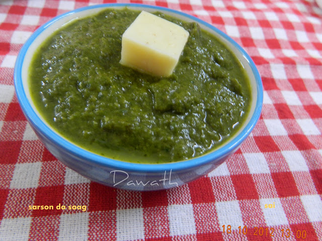 Sarson da saag is best served with Makki di roti.Sarson means mustard leaves.This is a typical Punjabi dish.Makki di roti and sarson da saag is mostly prepared during winter.