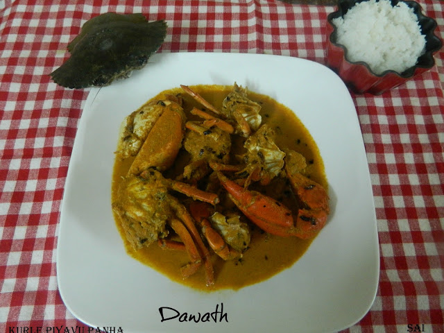 Kurle piyavu panha is a traditional konkani preparation. Kurle means crab,piyavu means onion and panha means seasoning which means crab curry seasoned with onions.This curry goes well with boiled rice.My mamama and amma used to prepare this authentic dish very well,especially we used to eat this in the brass plate at my mamama’s house.The minute we used to go to my mamama’s(maternal grandmother) house ,my maamu(maternal uncle),used to get giant live crabs from the market and we used to enjoy the sight of the crab running here and there and mamama used to clean it very beautifully,so did my amma and I have also inherited a lot of things from them.Poor mamama, the crabs used to attack her hands by pricking with its sharp legs,but she was also very clever to handle them.So there would be literally a war between crab and mamama,lol, and my mamama was always Jhansi ki rani. And she used to help us out from separating the flesh from the crab while we used to have our lunch and sit with a pounding stone to break open the crab pincers(daang),that was the crab cutter of our times……Nostalgia…..Infact I use that traditional way to open the crab even now, despite having a crab cutter.