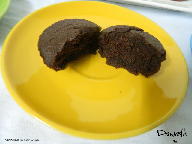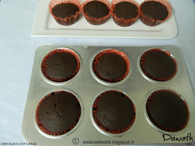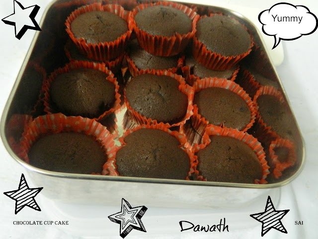 I baked these batch of cup cakes in my newly bought Bajaj OTG last month. In fact I inaugurated with this lovely bake .And my first attempt was a success ,so I really love my OTG. If you are a chocolate lover you will definitely love this deadly cupcake.I adapted this recipe from Joy of baking, where she has explained step wise easily.And the picture looked so inviting I had to try these beauties.And since it is Christmas atmosphere in the air I posted it today.Wanted to post it last month itself but could not compile the recipe because of other commitment,may be it was preserved for today.