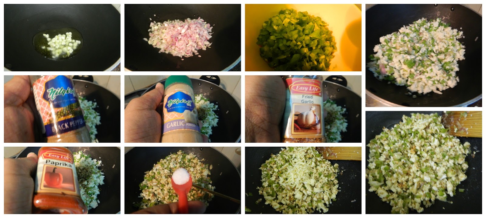 2. To prepare the filling heat 1 tsp oil and fry the minced garlic and stir for few seconds.