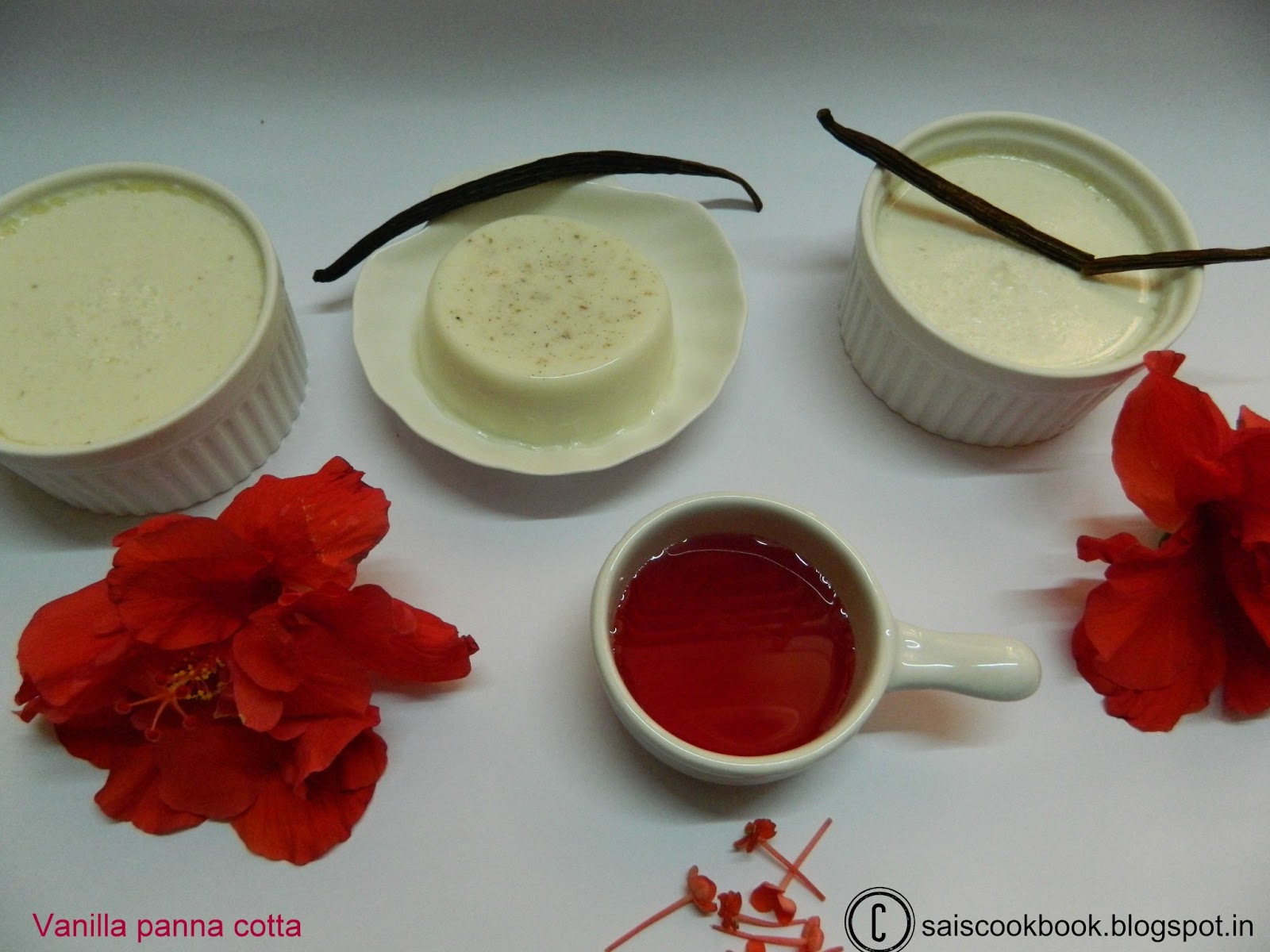 I first came across panna cotta when I watched Joey Mathew’s show last year.It looked so yummy,I was very tempted to eat it,but the thought of gelatine put me off and was disappointed as agar agar or china grass wasn’t available at our place.Then one day surprisingly I got the china grass sheets at the Nilgiris super market when I had been for my regular grocery shopping.Followed by one more surprise, Pratibha’s post of eggless Vanilla bean panna cotta in her blog which I bookmarked it immediately,but wasn’t confident enough to try it… After many months saw many members from the food groups trying it and adding it in the group, made me confident enough to try it…Panna cotta is an Italian dessert which is a type of pudding served with coulis.Same recipe may be prepared with other flavours like cardamom,chocolate,coconut,orange etc.