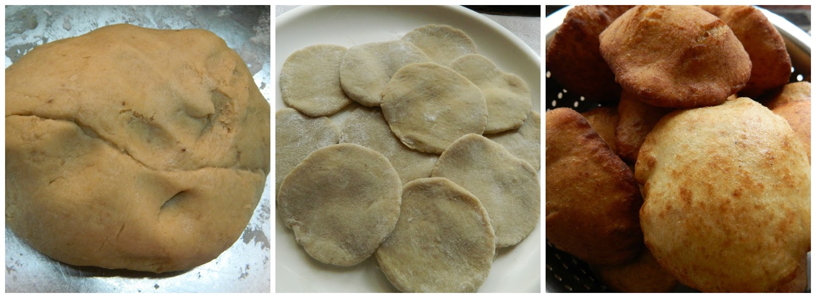 - Next morning punch the dough again,pinch big lemon sized balls and roll it into thick discs.