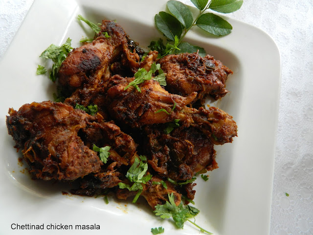 I often cook chicken delicacies every week for our kids and this time I tried Chettinad chicken masala from the blog Edible garden.The recipe was easy to prepare and all my folks at home relished it…I dedicate this dish to my fb friend Pallavi Nayak as she is a very sweet friend of mine and is passionate about cooking and eating, just like me.What say Pallu?