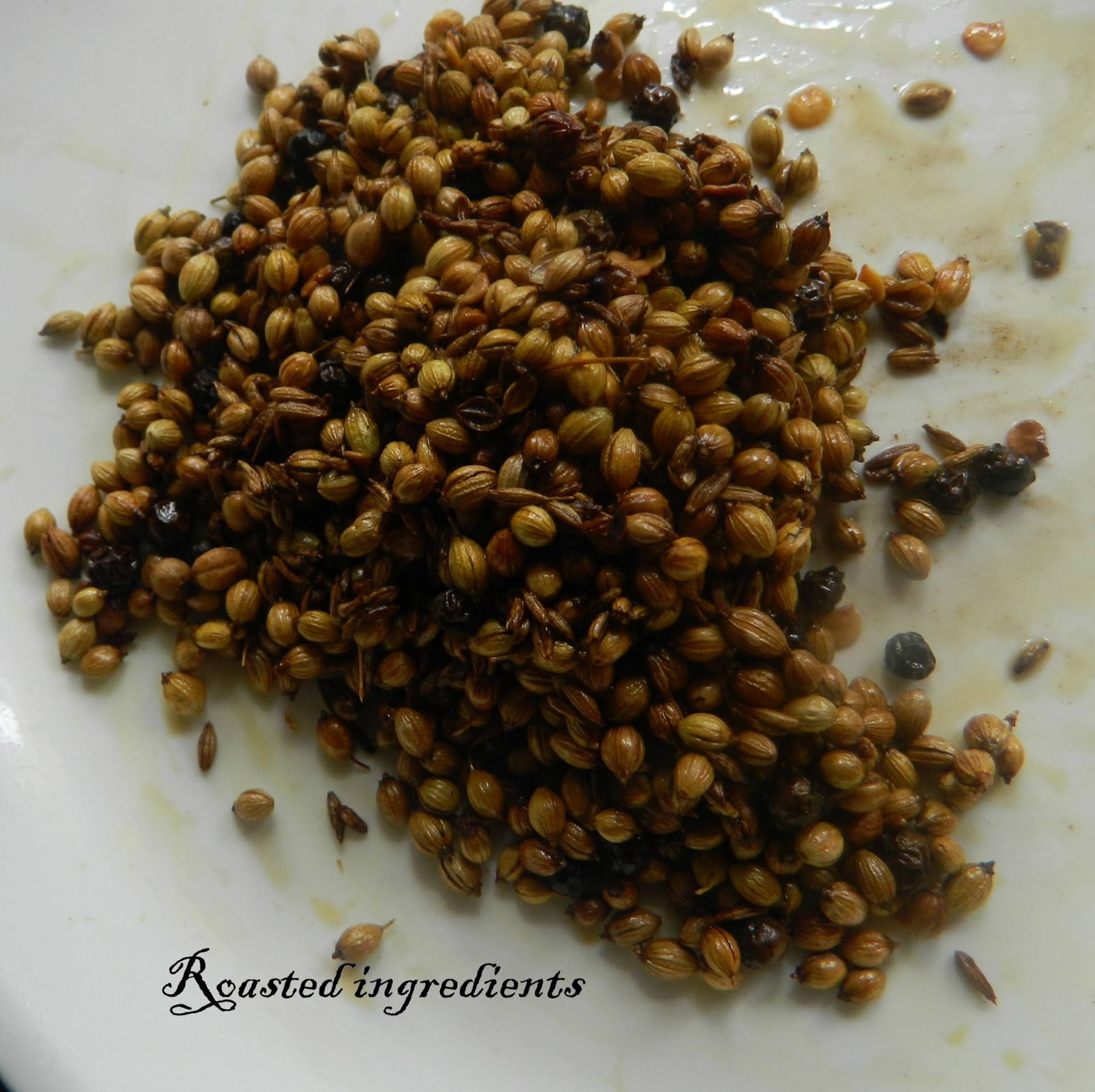 - Roast the other ingredients mentioned in the list with 1 tsp oil or ghee in the same pan until brown in colour.