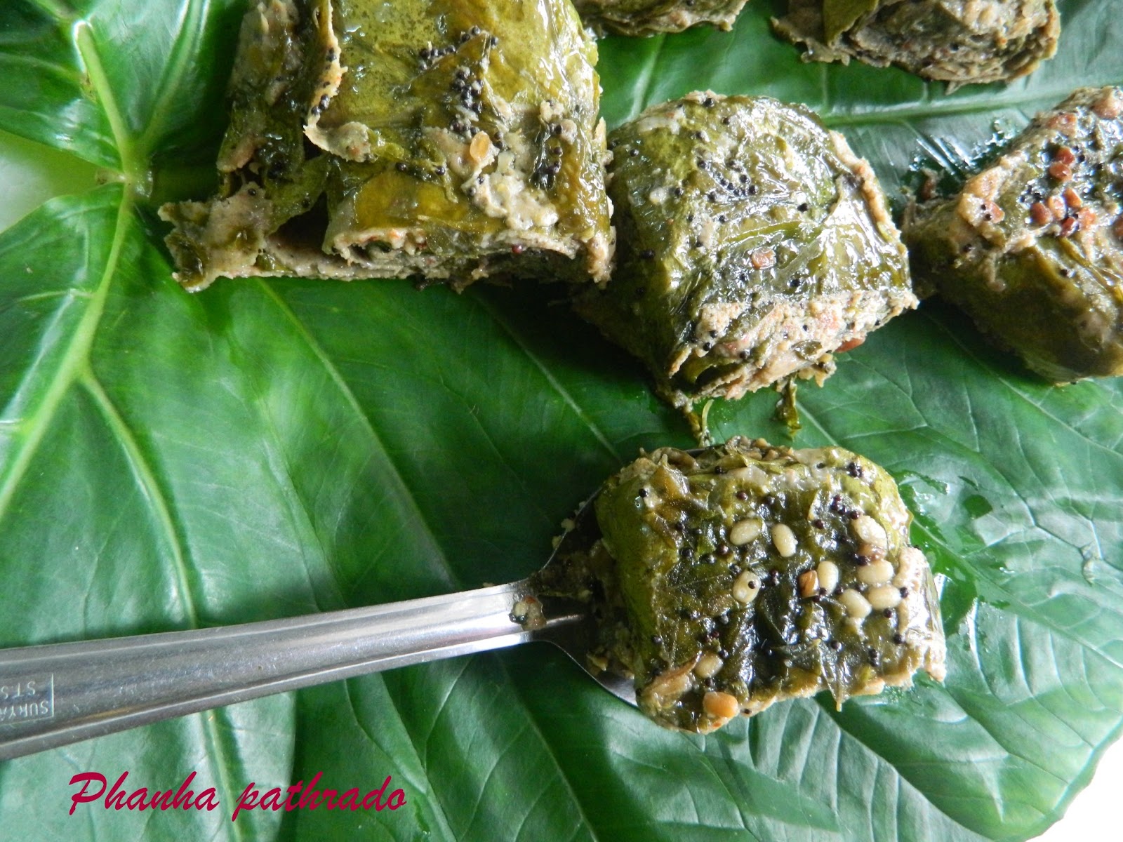 Dear readers this is a pathrado week,yes,today again I’m posting a recipe on Pathrado, but seasoned version.By now you’ll must have got an idea on what Pathrado is.Please refer my previous post on Pathrado for other details…When I prepared steamed version of pathrado I kept few rolls in the refrigerator to prepare panha pathrado so that I can share the recipe with you’ll.Even otherwise I refrigerate few rolls for my future use if I have surplus.You may also store it in the freezer for a week or more and steam it whenever you want by bringing it to normal temperature before cooking.