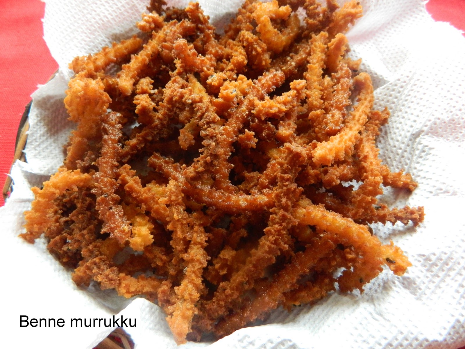 On Mosurukudike day I was in a mood to prepare Murrukku’s.I tried 2 different versions on the same day.One recipe which I posted  yesterday and this is the second one which I tried from my Fb friend Nandini kini’s recipe.Both came out equally good.The colour of this murrukku was slightly darker since chilly powder was added.It came out crunchy and tasty.For stepwise pictures refer Butter Murrukku.