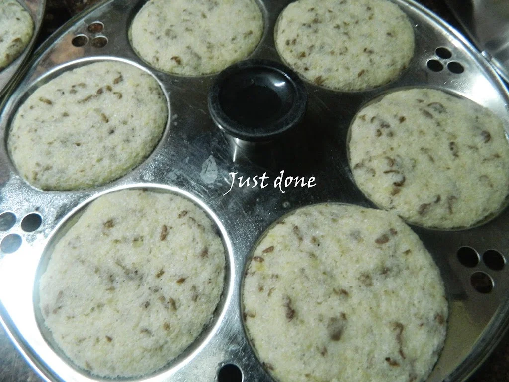 - Grease the idli moulds,fill the batter and steam it for 25 minutes.
