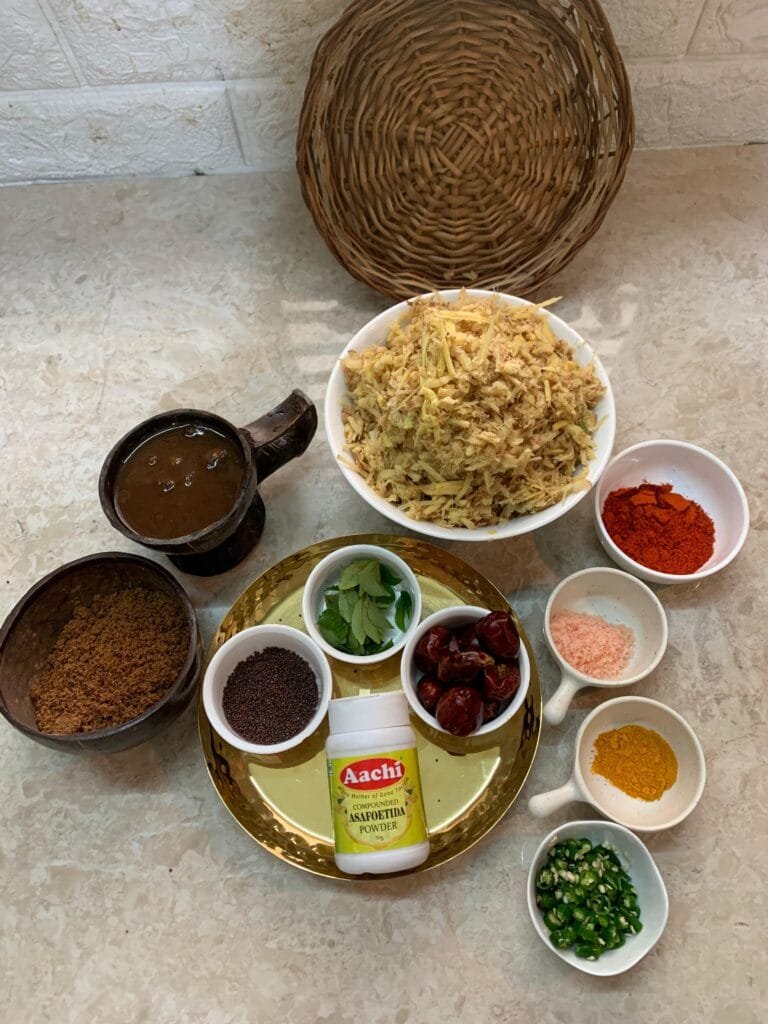Inji Curry, a traditional Kerala ginger pickle, is a flavor bomb that’s spicy, tangy, slightly bitter, and sweet. I fell in love with it during my school days at my best friend’s place and convinced my Aayi (paternal granny) to make it at home. Years later, my friend shared the dish, and I finally got the chance to make it myself, inspired by her recipe and some reels. My ginger had been waiting in the fridge for a while, and with her nudging, I finally gave it a try!